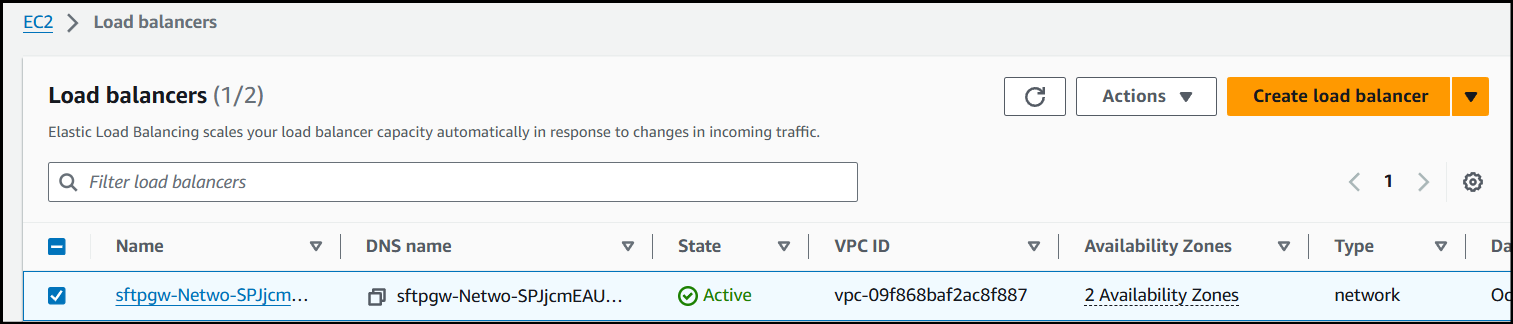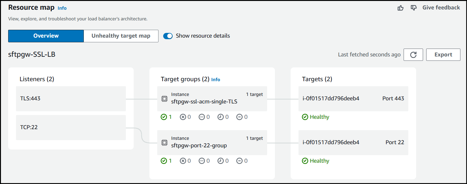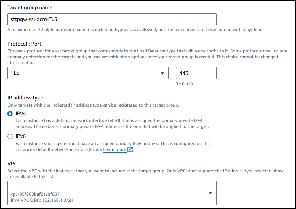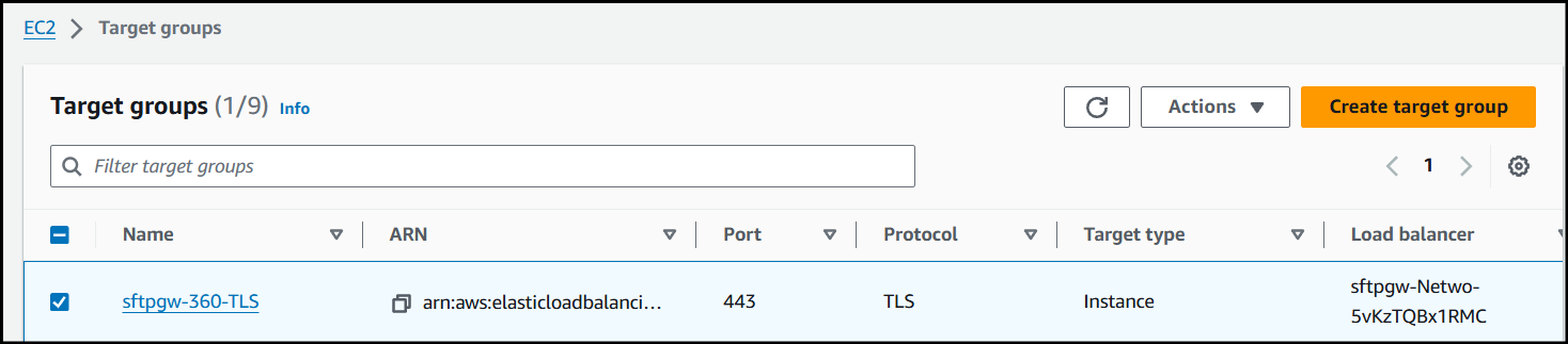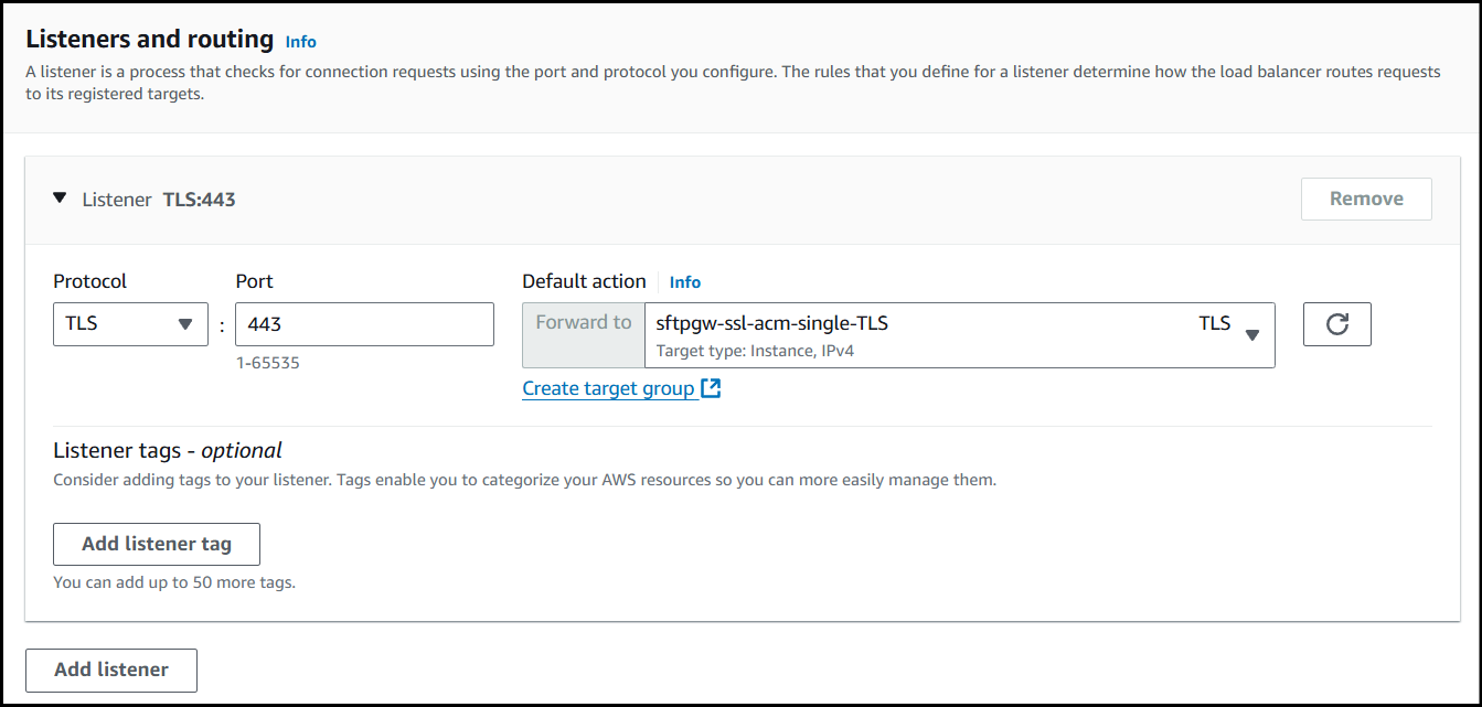 Finally, since we only created a target group for TLS, we need to create one for port 22, so we can connect to the Load Balancer via SFTP.