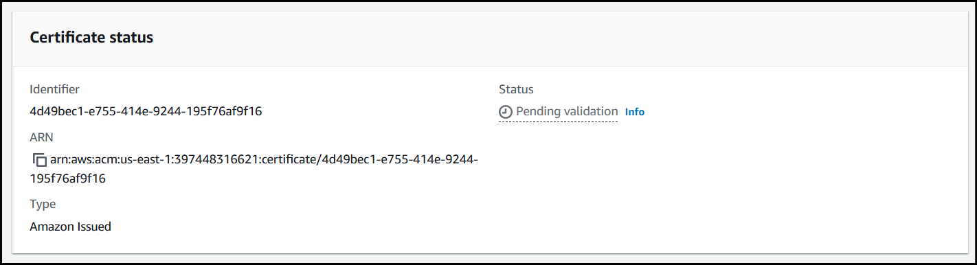 Once the record has been created, navigate back to your certificate in ACM.