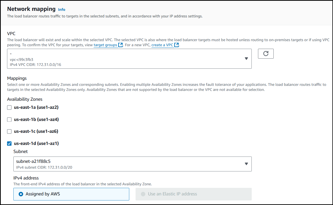 Select the VPC your instance is inside of and specify the Availability Zone(s) your instance is located.