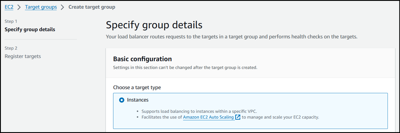 Choose Instances as the target type.